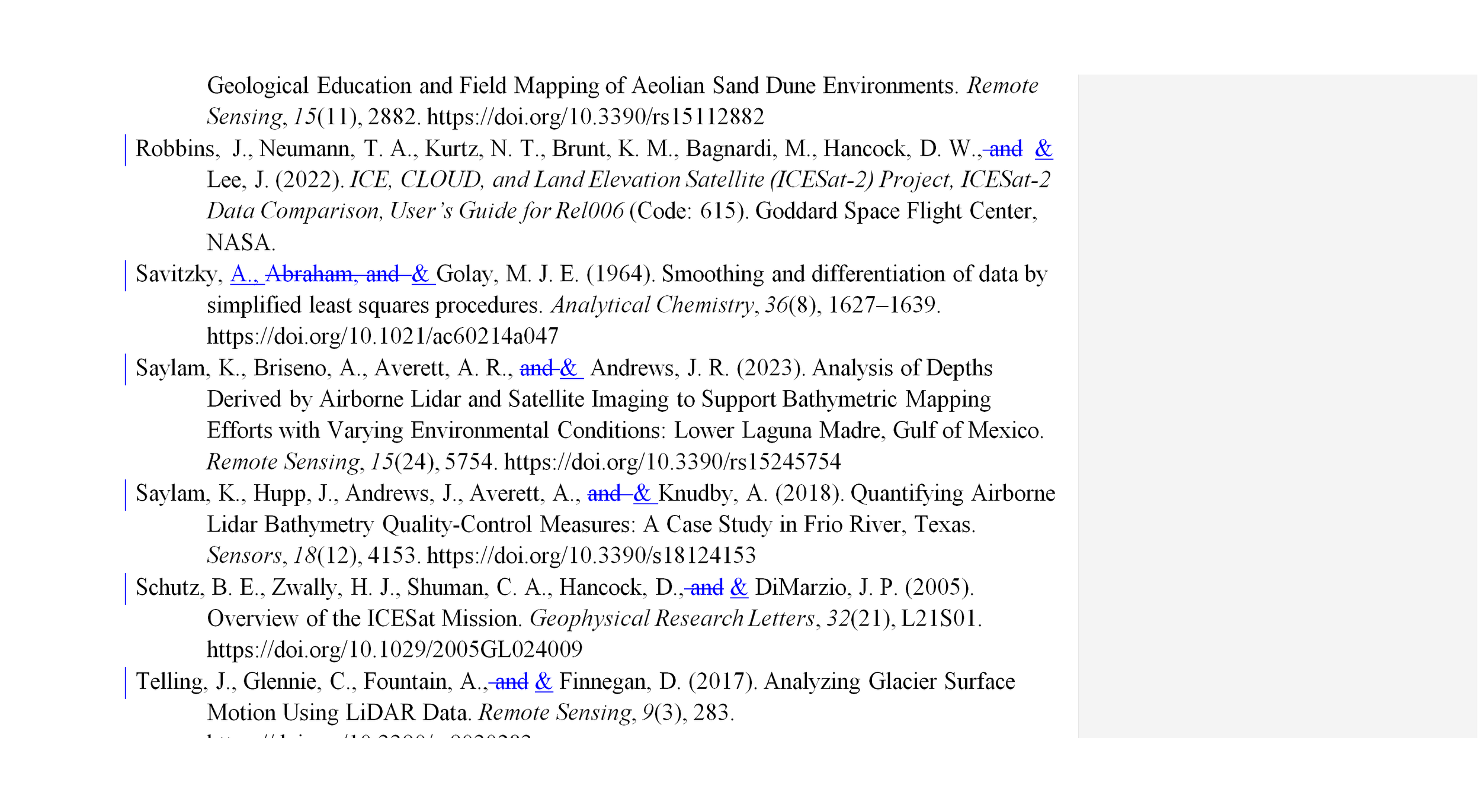 An example of a bibliography section, with tracked changes to satisfy the format requirements of the journal.